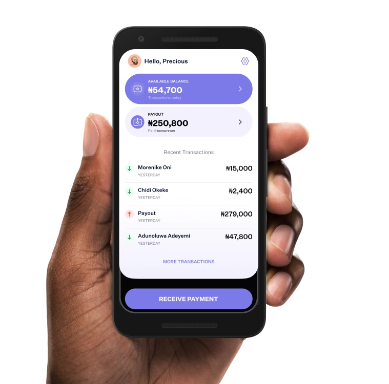 Allow small corner shops receive payments with their mobile phones and within 10 mins of sign up.